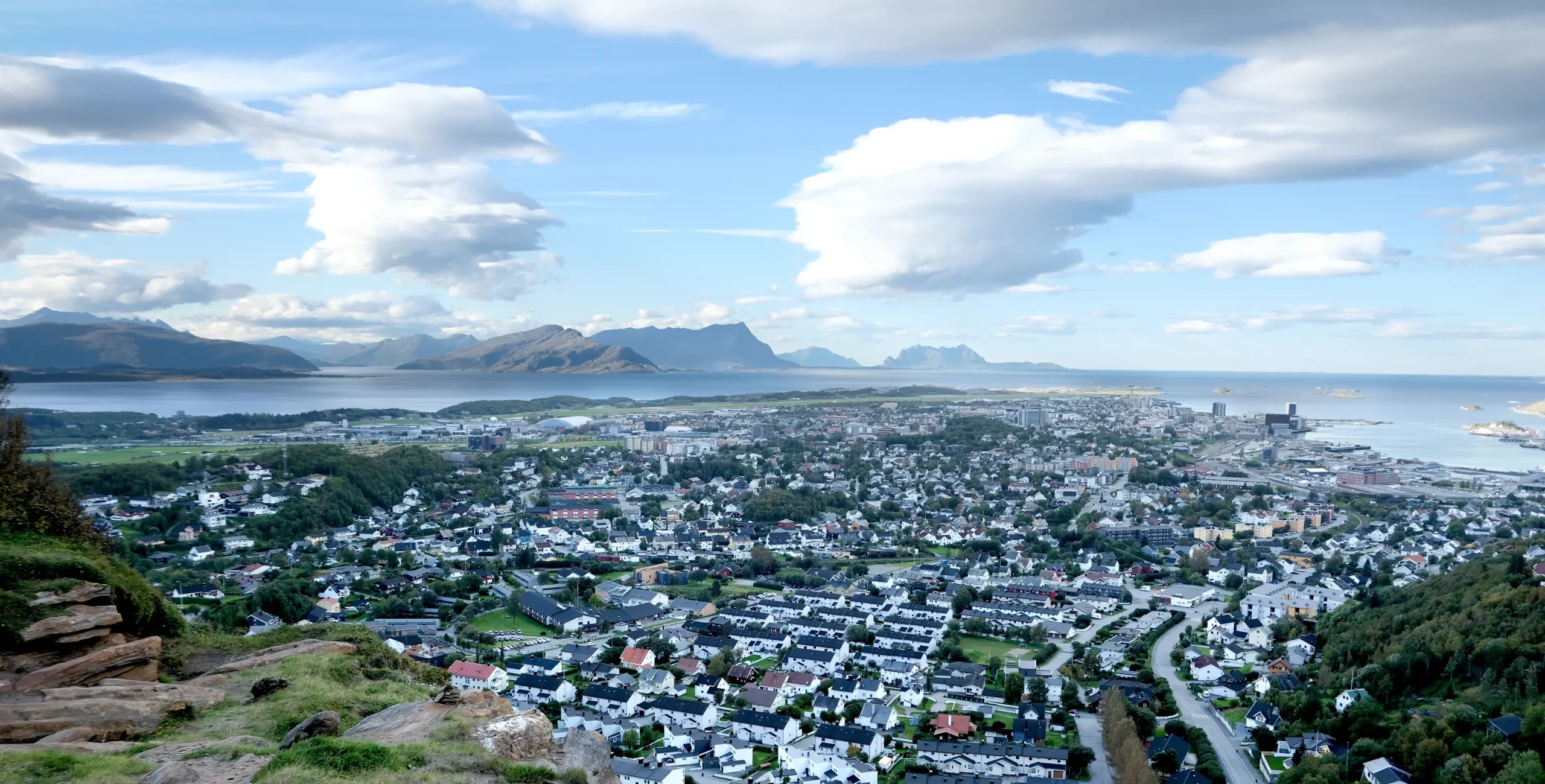 Her ser du noen av våre prosjekter i bykjernen av Bodø fra utsikten til Ramnfloget. Se beskrivelse ved å holde musepeker over eller klikke på aktuelle prosjekt. Snu mobilen eller nettbrettet for bedre navigering.