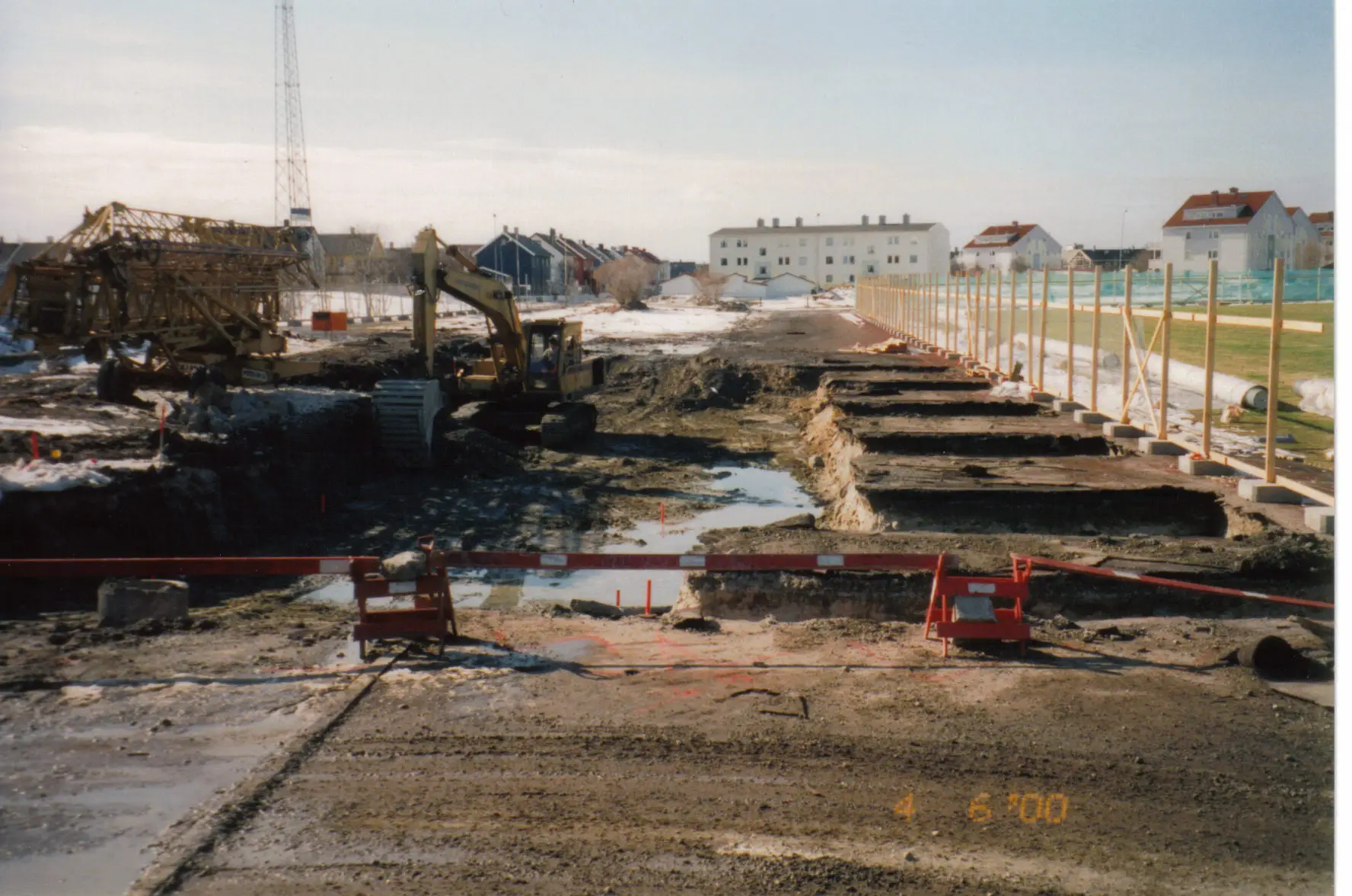 Utbygging av nye tribuner og bygg, samt boligfelt øst for Aspmyra stadion. (1999). Også tilbake i 2024 og gravde grøfter for nytt vanningssystem.